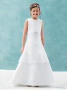 Crystal, has a simple and clean top, with a delicate beaded belt. The organza overskirt has lovely scallop edge which makes girls more beautiful.